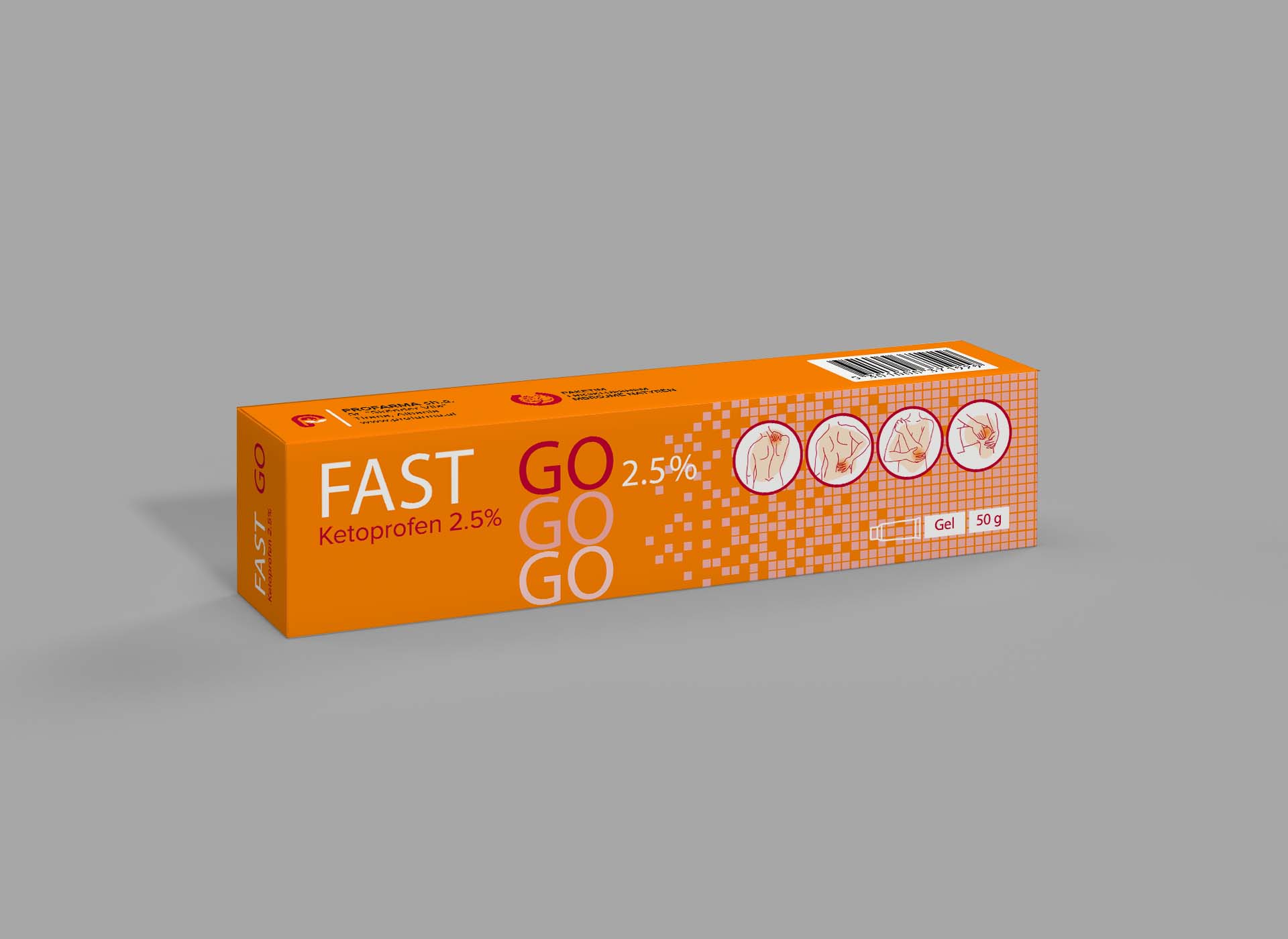 FastGo gel contains the active substance ketoprofen. Ketoprofen, a propionic acid derivative, is a non-steroidal anti-inflammatory drug with a strong analgesic action.